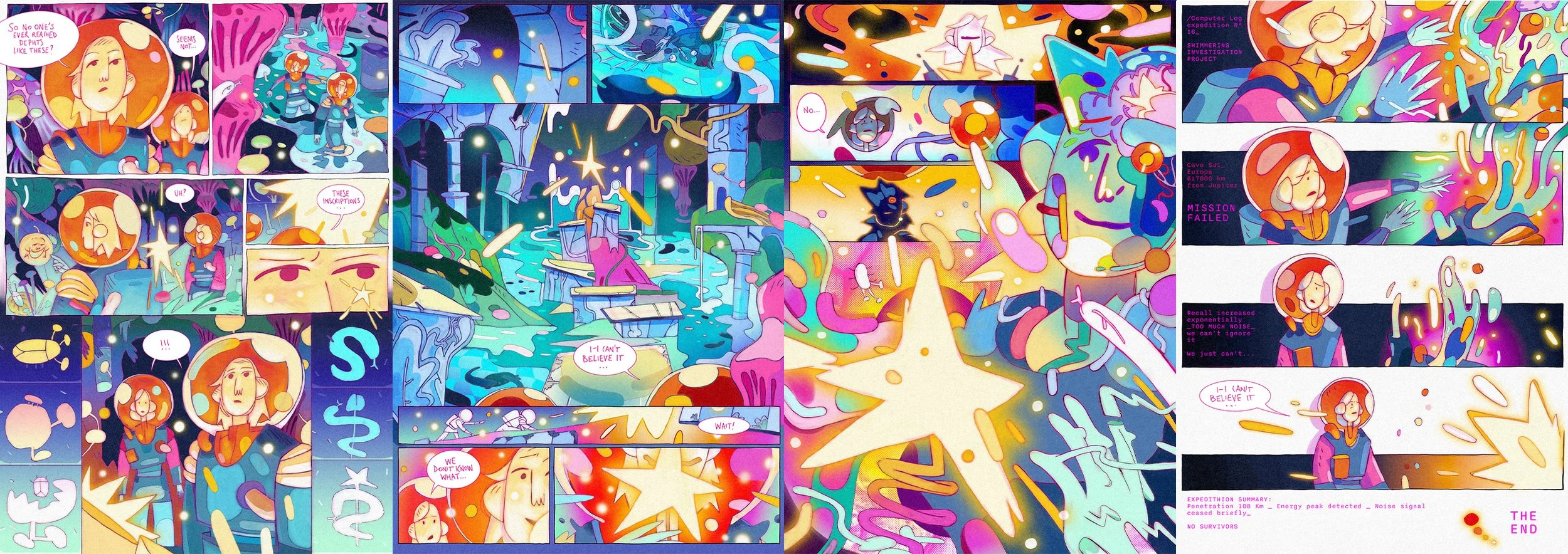 A four-page short story about two astronauts investigating a strange signal in a deep cave on Europa, one of Jupiter’s moons.
