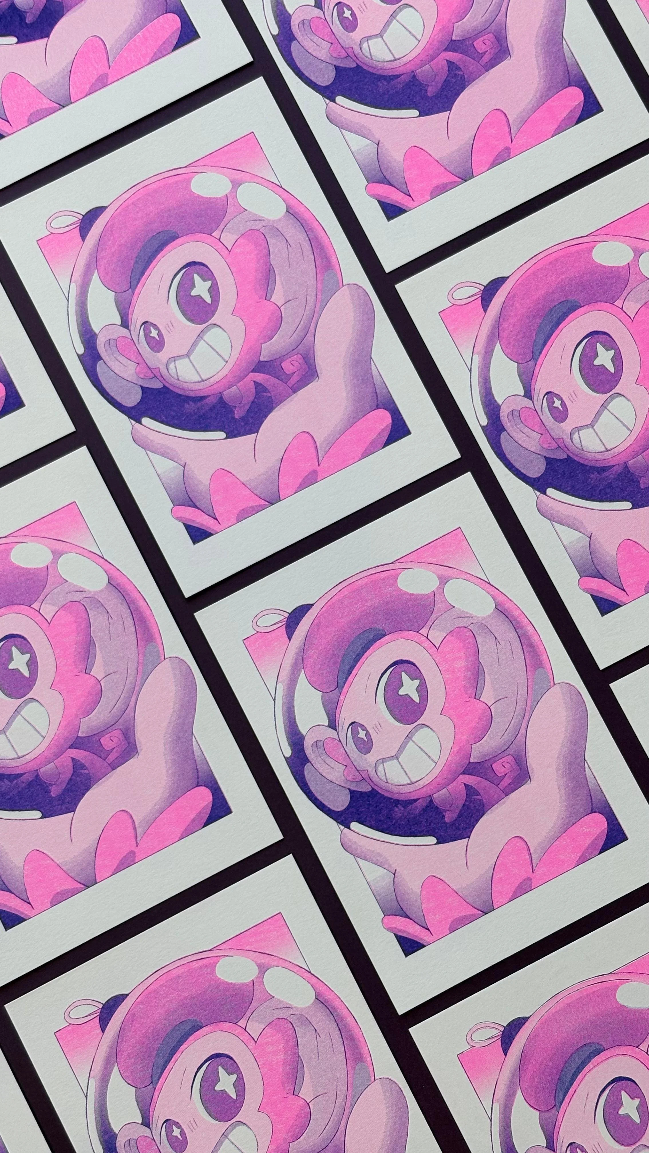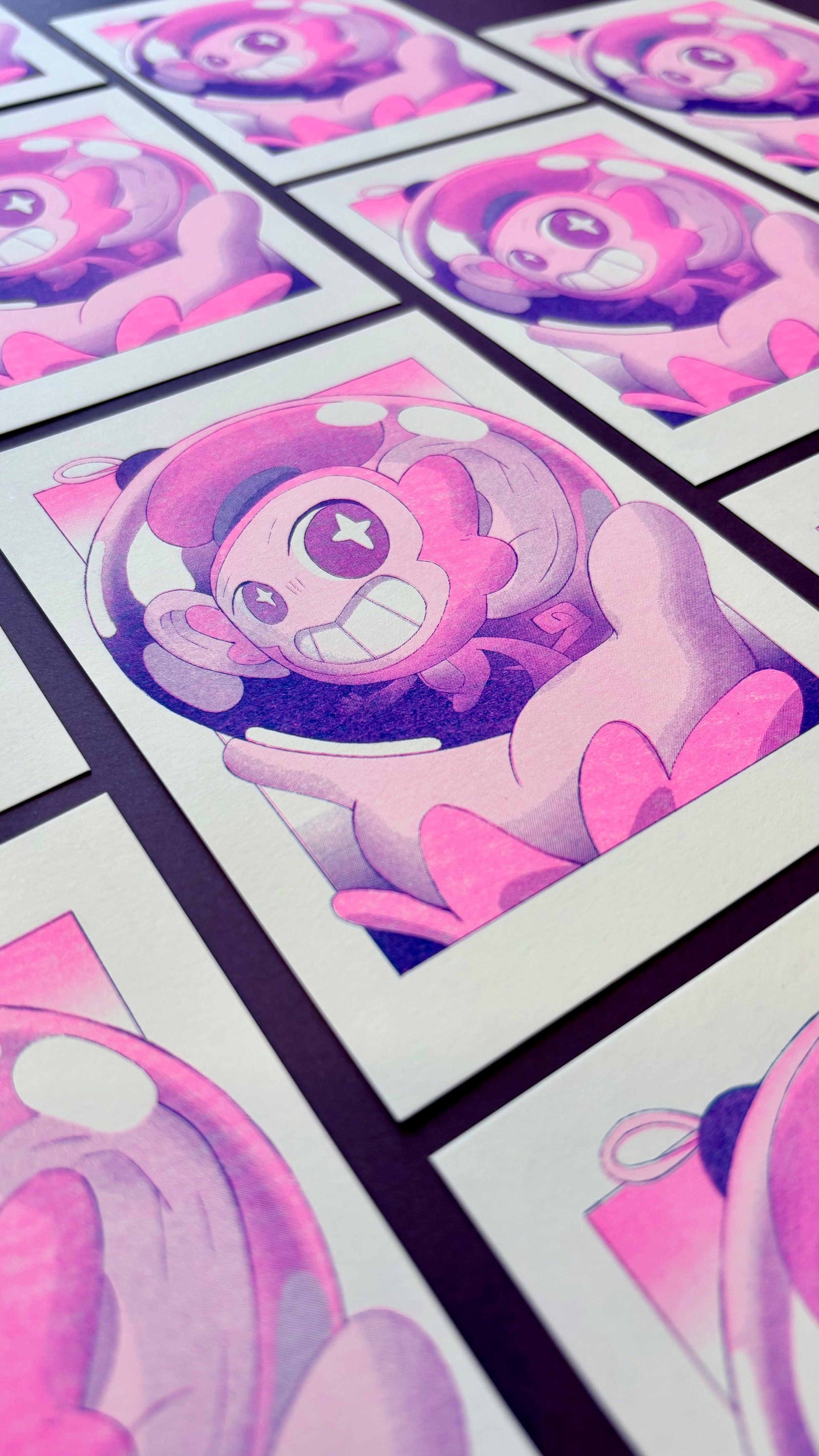 The postcard was printed in Risograph by Concretipo, and the drawing was animated by all the studio members.